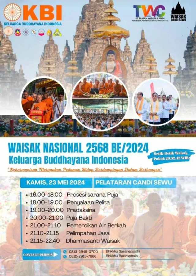 Buddhis Media. Rangkaian Acara Waisak Nasional 2568 BE/2024 Keluarga Buddhayana Indonesia Candi Sewu Yogyakarta. Perayaan Waisak di Candi Sewu oleh Keluarga Buddhayana Indonesia (KBI) adalah acara yang sangat penting dan sakral bagi umat Buddha di Indonesia.